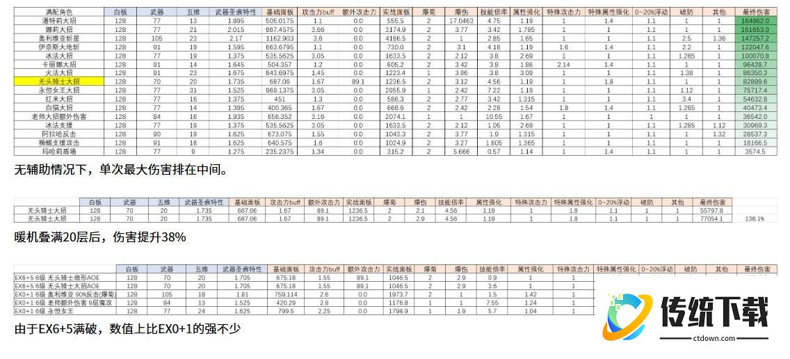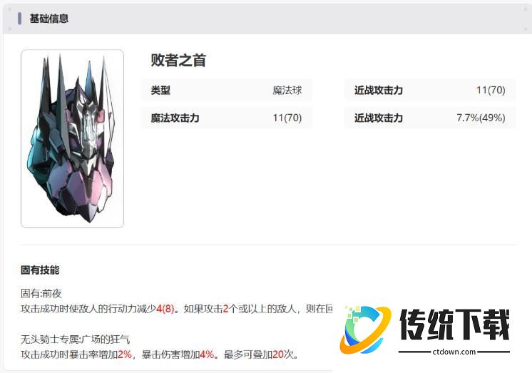 * 被动只在无头自身行动时生效,行动结束后效果消失。因此行动结束后45%近战攻击力会消失,无头骑士的反击伤害会变低。