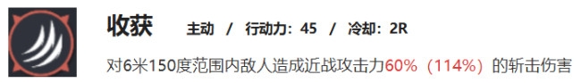 固定60%伤害倍率,15行动力消耗,附带吸人效果,使用后收割者buff的57.5%移速就会消失。