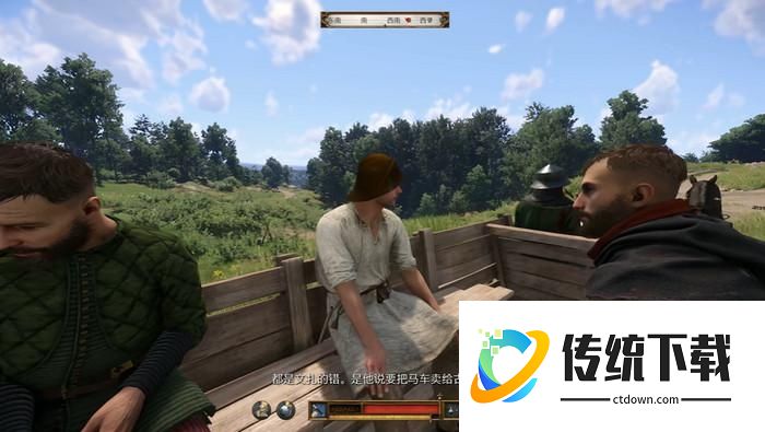 4、接着 亨利就会和其他NPC坐在马车上一起复刻老滚5开头的4人做马车名场面了。