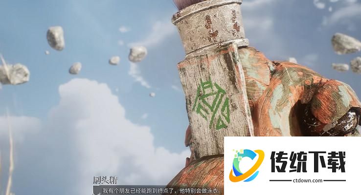 2、一进来可以看到一个刷头精,我们去跟他对话,得知需要经历一段跑酷去找他的朋友,他的朋友擅长做泳衣。