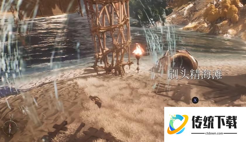 1、我们在完成第二张飞流域的主线之后,先别着急着去古代圣所,先来到地图的左上角海滩,这里进入刷头精海滩。
