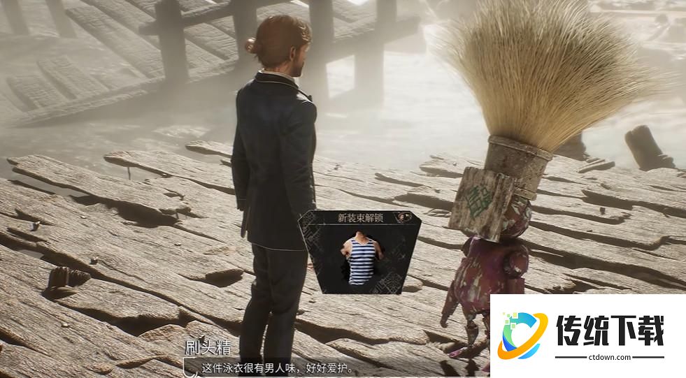 6、顺利通过之后跟他对话,会先拿到古斯塔夫的泳衣。