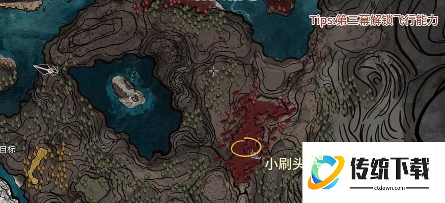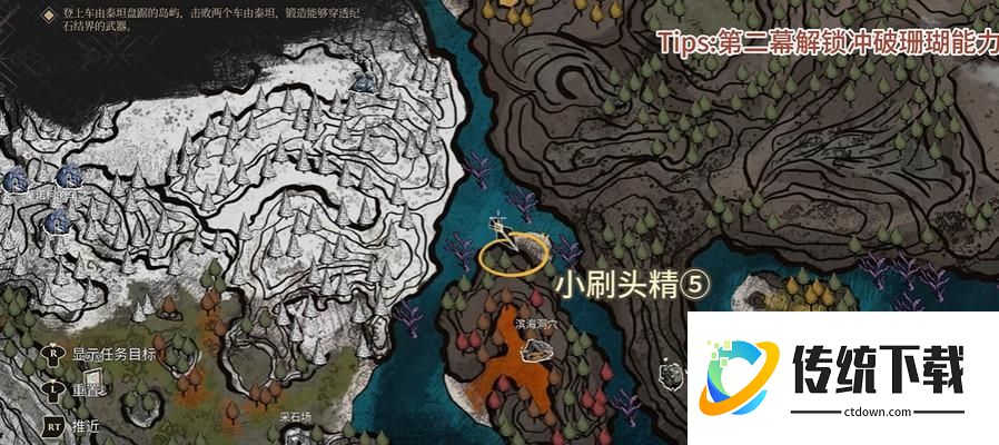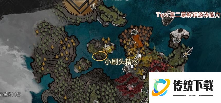 第三个刷头精需要推进主线,在埃斯基耶解锁游泳能力之后,才可以获取,具体位置如下图↓
