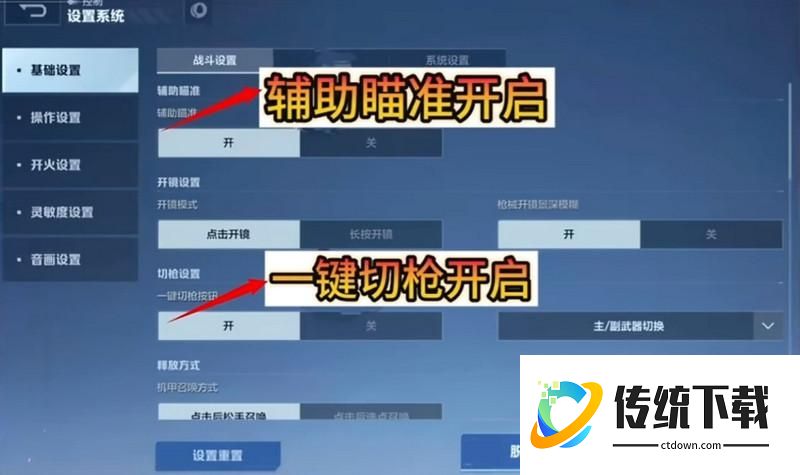 6、建议将设置里的【辅助瞄准】与【一键切枪】一并打开,效果更佳;