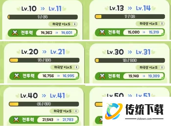可见升级带来的战力提升基本是恒定的