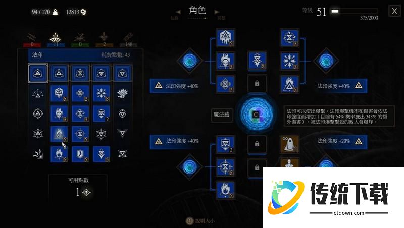4、操作完毕后,就得获得【可以法印使出暴击。法印暴击几率和伤害会依法印强度而增加(目前有54%几率施出343%的额外伤害)。被法印暴击击杀的敌人会爆炸。】的效果。