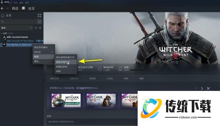 1.在steam客户端,找到巫师3游戏,右键->属性->浏览文件文件;