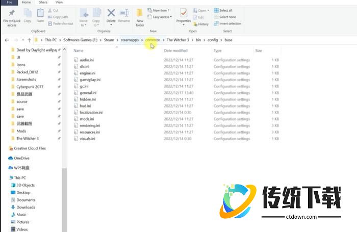 2.进入游戏根目录后,打开The Witcher 3 > bin > config > base文件夹;