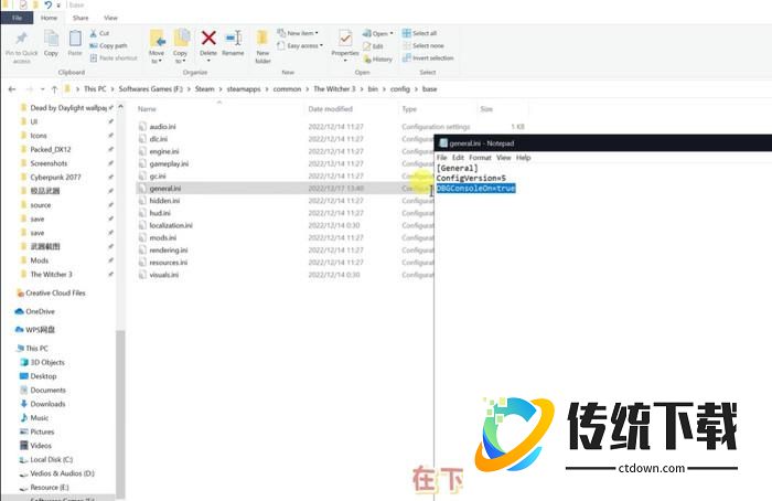 3.找到“general.ini”,右键用记事本打开,然后在结尾加上DBGConsoleOn=true