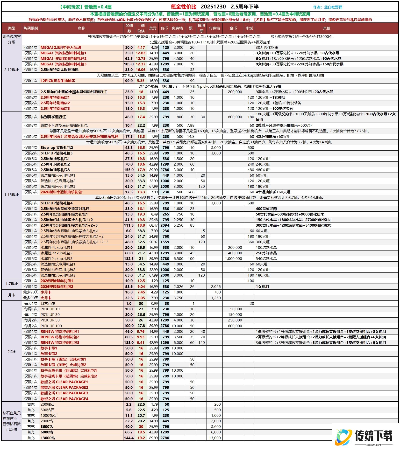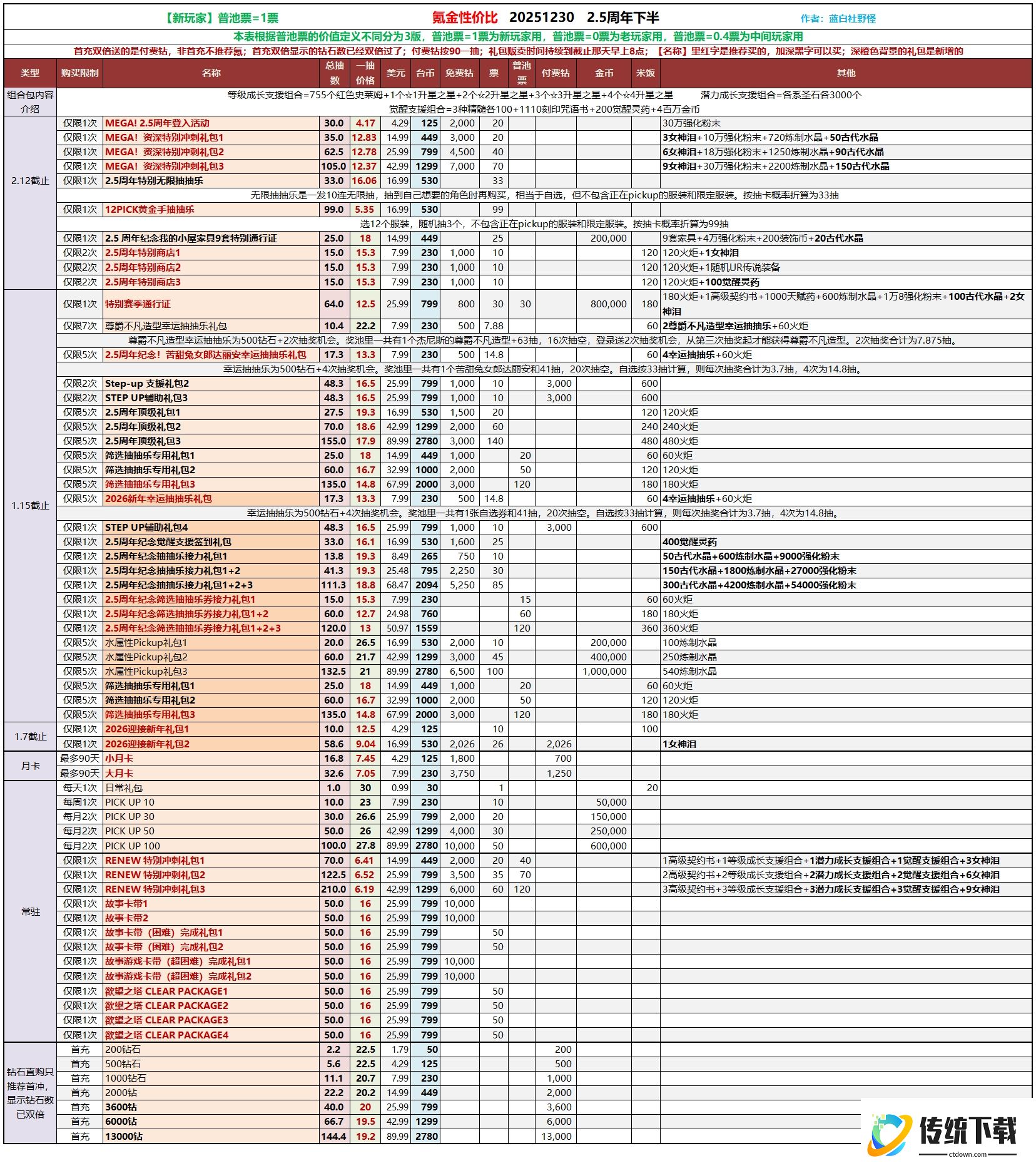 省流:主要考虑红色名称的礼包,其次考虑黑色粗体礼包。