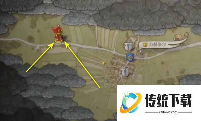 1、打开游戏中的第二章大地图,在西侧可以找到名为【苏赫多尔】的城堡;