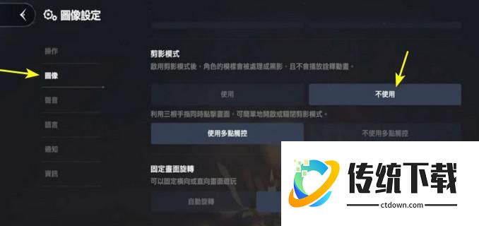 2、在设置界面左侧,点击【图像】,然后找到【剪影模式】选择【不使用】;