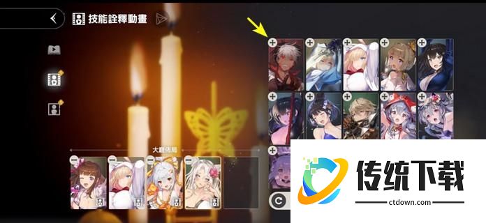 4、在右侧的【角色头像栏的+号】即可将喜欢的角色放置到大厅布局动画中。