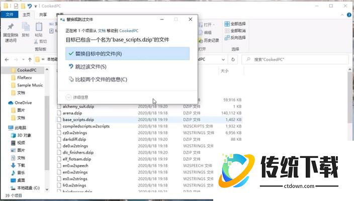 3、将压缩包内的base_scripts.dzip放到上述↑文件夹中,并选择替换。
