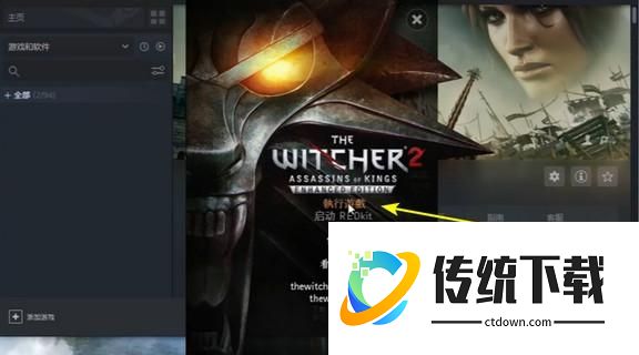 4、接着重新启动游戏,在启动器里选择“执行游戏”就可以正常进入巫师2啦~。