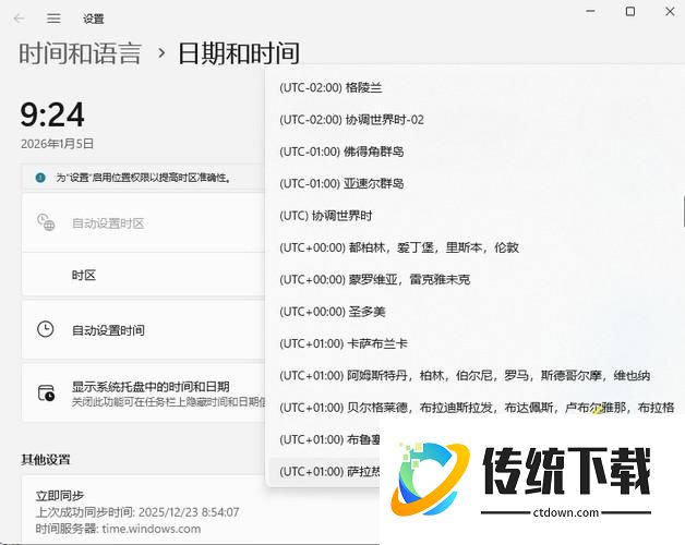2、然后将时区改为【(UTC+01:00)萨拉热窝,斯科普里,华沙,萨格勒布】。