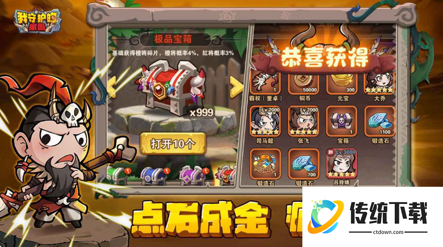 别忘了给武将穿上挂机掉落的石器特色装备,骨甲、石斧啥的,有好的就换上,实力涨得飞快。
