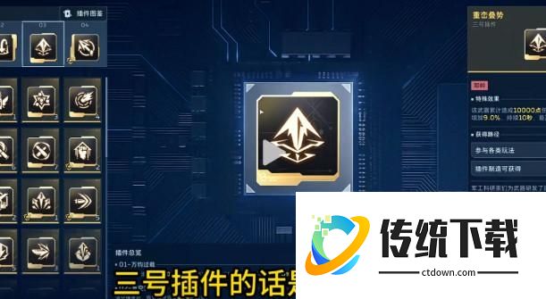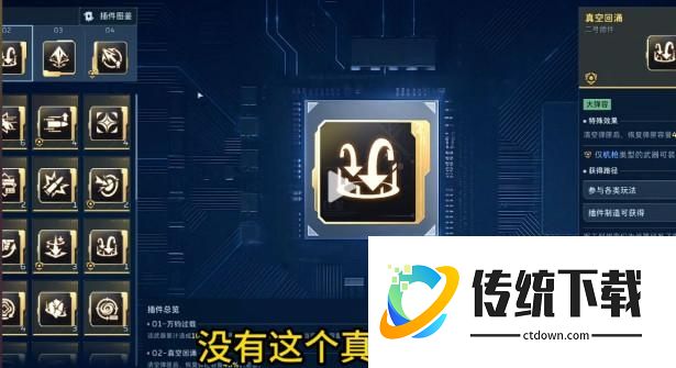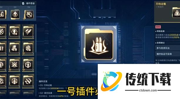 接下来是插件搭配,一号插件必须带万钧过载,至于为什么必须带,我会在操作手法里面说明。