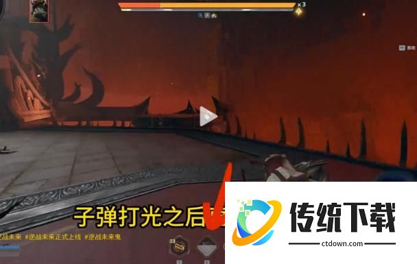 然后就是最重要的操作手法,注意看我的技能,子弹打光之后直接回复一半,然后切换副武器打一发,让我们主武器增加一发子弹,接着用主武器把这一发子弹打出去,技能直接回好。那么,一号插件为什么一定要带万钧过载?因为万钧过载给我们提供300发子弹,等我们子弹打完之后刷新出技能,刚好又可以再次吃到四号插件冥河送葬百分之百的增伤。