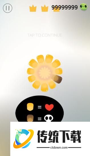 3、点击屏幕可以让鸽子开始吃玉米粒,注意上方的时间。皇冠为时间流逝,争取在结束的时候获得三个皇冠。