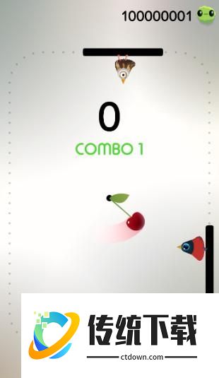 2、当樱桃转到小鸟的位置就点击,小鸟就会吃到樱桃,就是在适当时机成功投喂小鸟。会给你算连击数,连击数越高越好。