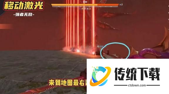 斜向激光和正向激光:大家来到子弹箱这里,就能无伤,没过去就得躲间隙