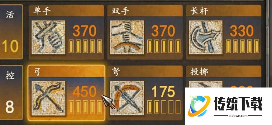 2.个性化打造:也可以给他们每个人打造独一无二的武器和装备,给他们穿上最豪华的盔甲;还可以练出可以穿透一切的标枪队。