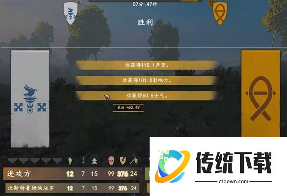 4.攻城结果与后续:打败守军后,这座城会直接被攻下;依靠骑士团配合守军出城迎战的机制,我们能轻松且快速拿下大部分城池,成为一方霸主,还能建立强大的帝国,之后也可以放弃王位从头再来。