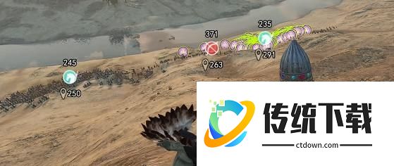我们前面说了,骑兵是不能停下来的,你一旦停下来,两队如果撞车的话,马上两队士兵至少是十几秒的混乱,那会被敌方的射手大片大片的刷屏。看我们这里就是用一些微操,让我们们的两队骑兵顺利的擦肩而过,并且继续保持着速度冲击敌方的射手。所以指挥好骑兵的关键就在于,你要让你的骑兵始终保持着速度,并且你要始终清晰的知道自己的骑兵在什么位置,并且提前预判自己的骑兵可能会因为什么情况而被迫停下来,然后你去规避这种可能性。