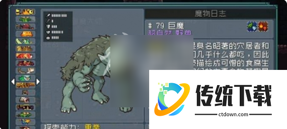 2、从魔物日志中可以得知,巨魔是超自然的野兽,击败它即可获得魔物铃和等级徽章。