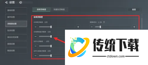 进入灵敏度设置界面,滑动滑块即可设置灵敏度。