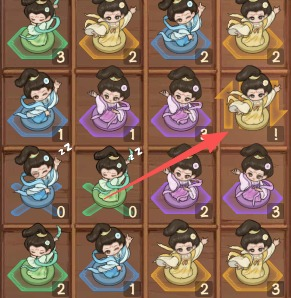 其次一排中,不管是横着还是竖着,然后只要有三个一样的先消这一个,因为这一个基本上很划算的可以刷新,新的舞女就有很多选择