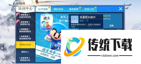 进入活动之后,我们在左侧的活动列表当中往下滑,找到值班周长皮蛋的活动界面,点击一下。