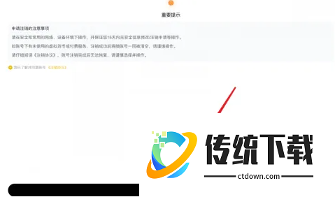 弹出重要提示界面,点击【申请注销】即可注销重开
