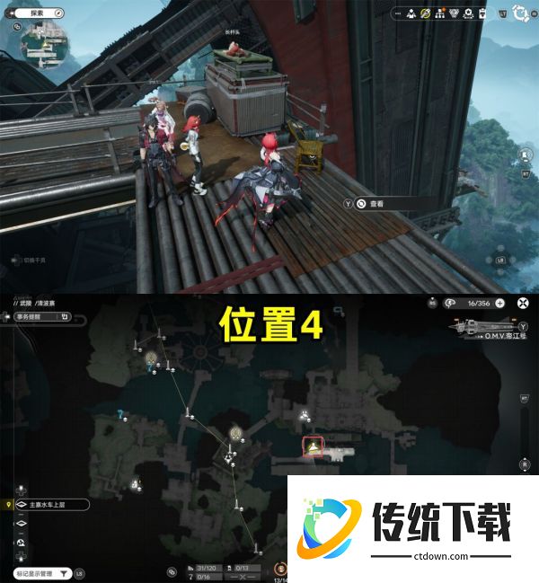 注意第4处情报的位置,需要通过乘坐水车达到最上层