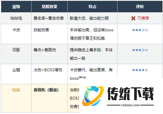 目前版本普通宠物有八个,但真正值得使用的只有以下三种: