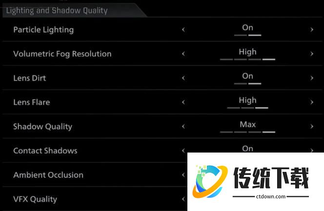 接着,再对最吃性能的4类画面设置选项进行调整,推荐顺序是:路追/光追→阴影效果设置→体积效果(雾/云/体积光)设置→反射类设置(SSR/RT Reflections)。