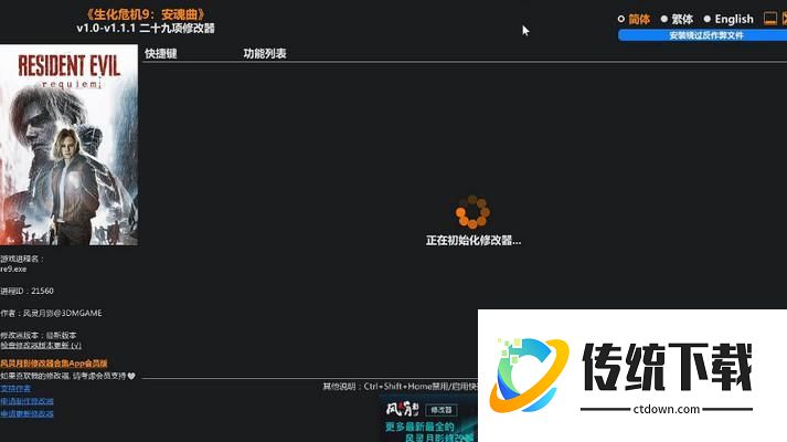 1.前往风灵月影官网,下载最新版生化危机9修改器;