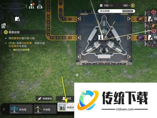 那你如果要加大发电功率,在底部点击,点击热能池拖拽下下图所示位置↓。