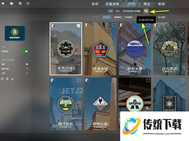 2.点击 地球 图标,进入【社区服务器浏览器】;
