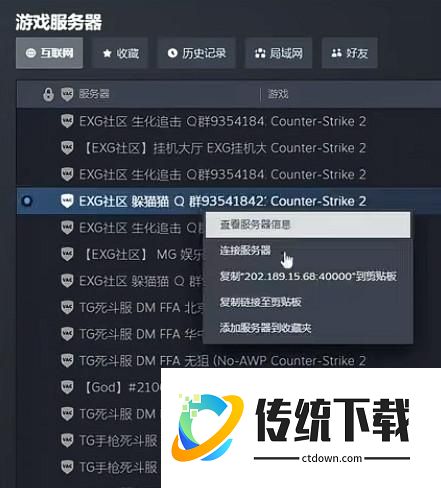 4.在服务器列表页中,找到躲猫猫娱乐模式的房间,右键【添加服务器到收藏夹】;
