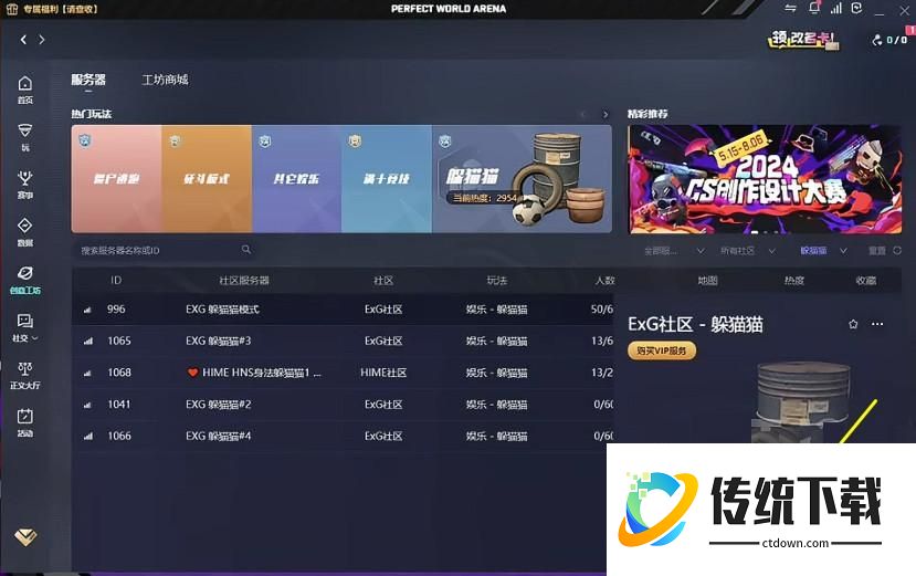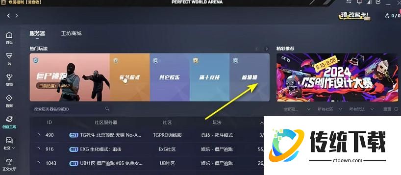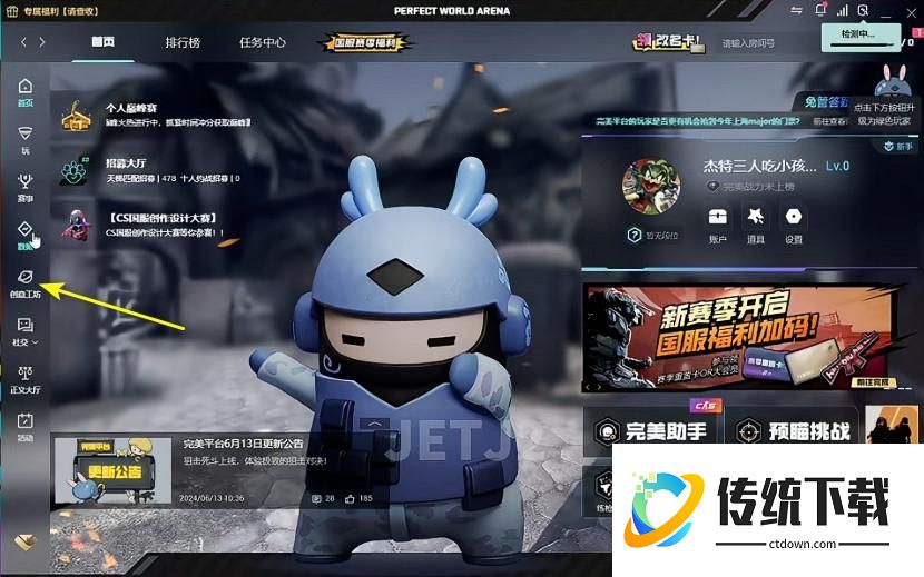 1.打开完美世界竞技平台,登录后点击右侧的【创意工坊】;