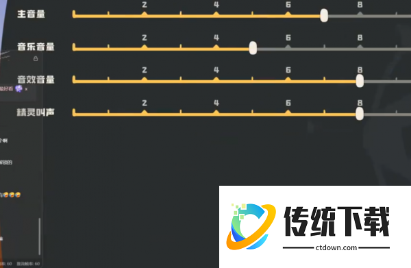 音频设置独立成页,包含主音量、音效音量、背景音乐音量及语音音量四类滑动调节条。其中精灵语音、技能触发提示音及场景环境音均属于音效范畴,玩家可根据使用耳机或外放的不同使用场景,分别调整各项音量比例,以增强沉浸式的交互体验。