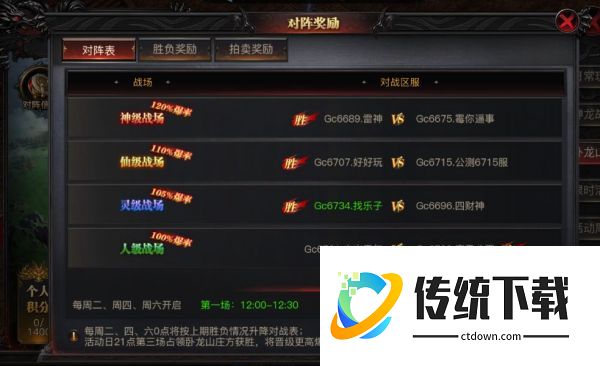 首场匹配前进行本区人气助威,助威值决定参战级别: