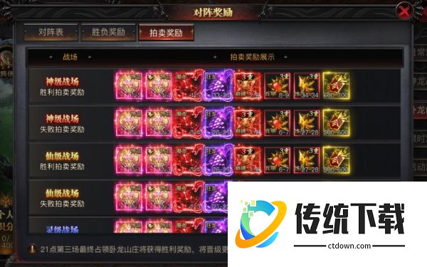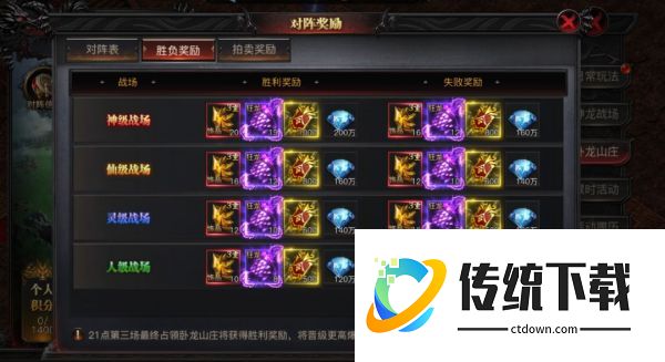 四、胜利奖励总览成功夺取卧龙山庄后,全服共享: