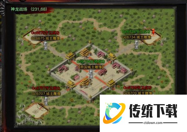 战场布局:神龙战场内设 5座雕像——中央帝国雕像 + 东/南/西/北四方位