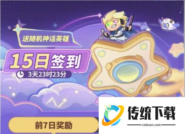 15日签到:每日登录领取,第7天送传说梦灵,第15天送随机神话英雄,必做。