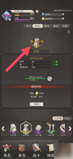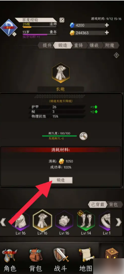 消耗1050游戏金币点击锻造(锻造等级不同消耗金币不同)