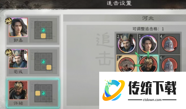 布阵还有兵种的搭配细节,也会决定阵容的强度。英雄站位上,郭嘉应该避开追击格让许褚站在两人的追击格上,就能最大化触发联动的效果。在兵种方面,他身后的追击格应该放置五斗米祭,才能有效提供续航,另外郭嘉还有许诸的正前方就应该安排一个西凉铁骑。在攻防兼备的配置下,才能更加放心的输出。技能搭配还有固定的思路,郭嘉就会有双主动技能。许褚搭配双追击的技能,那此时就可以稳定的收割残血,让定点狙杀更稳一些。