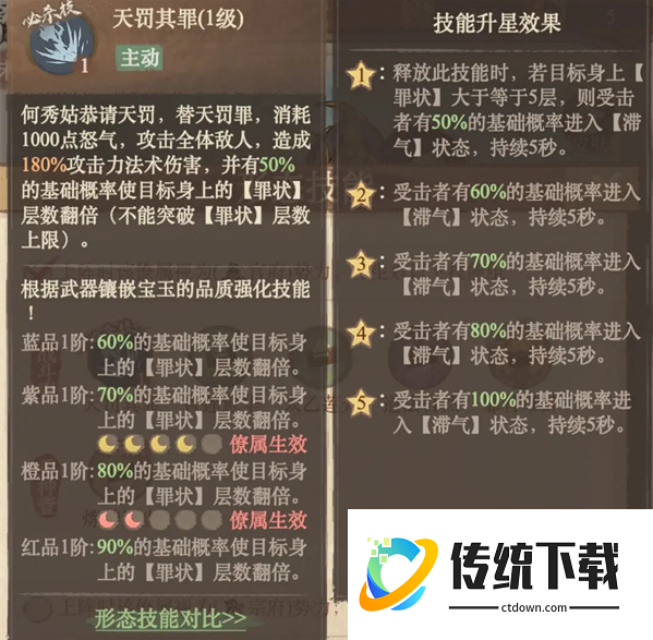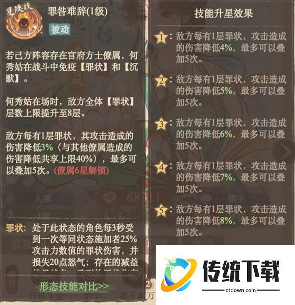 何秀姑是本阵容的功能辅助核心。她不仅能用必杀技翻倍罪状并施加“滞气”控怒,还能通过被动技能“太乙莲光”为全队提供伤害分摊和成长的攻防属性,极大增强团队的持久战能力。其“罪咎难辞”被动提升罪状上限并降低敌方伤害,进一步巩固了阵容的防守反击基调。